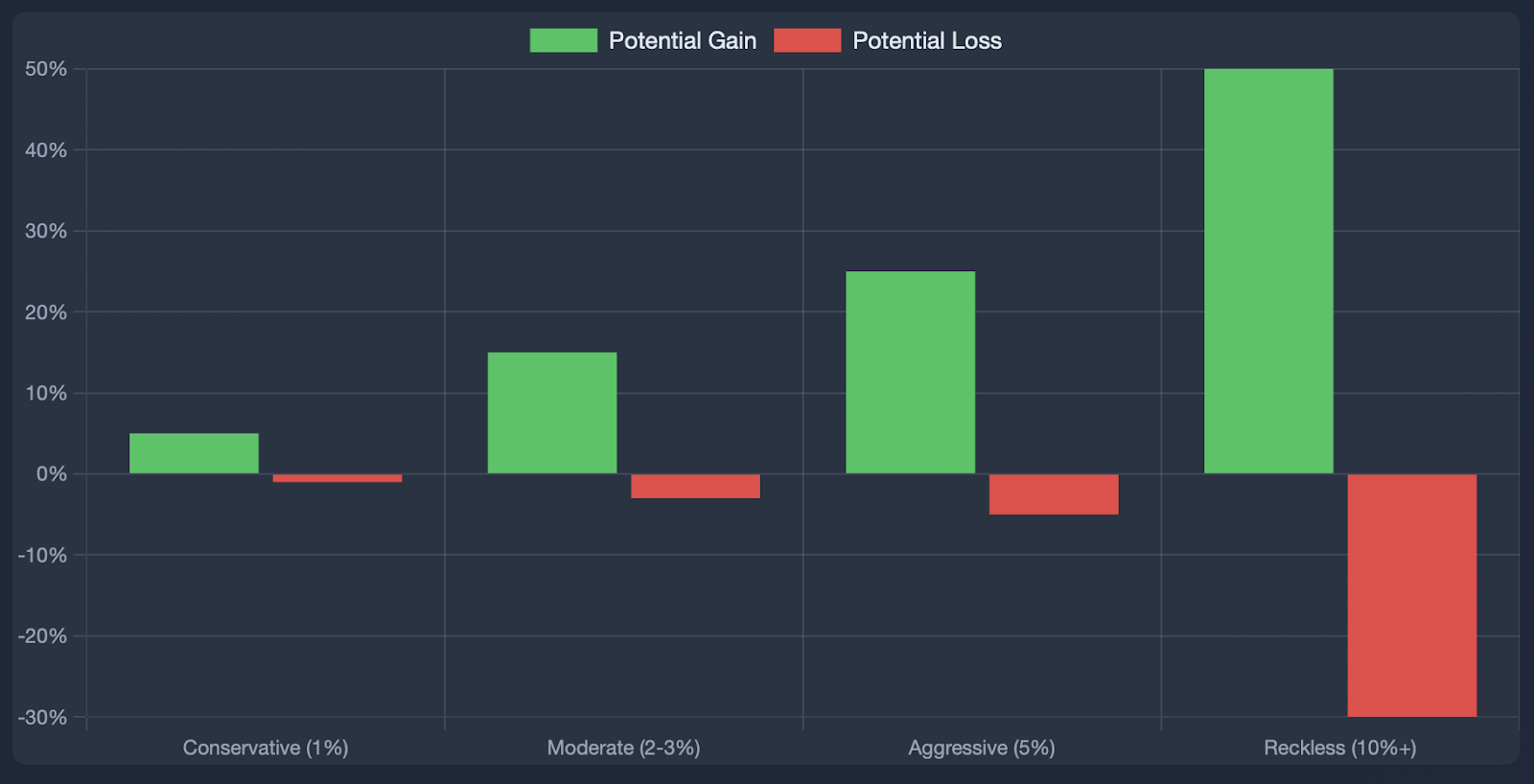 Outcome: The trader got margin called at $30,000 when Bitcoin corrected downwards, and lost 80% of their account even though they were correct in their overall bullish thesis.