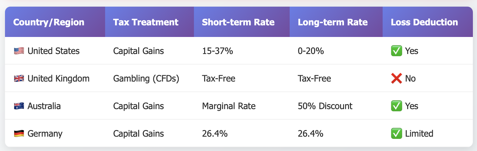 Certain countries permit the ability to offset realized losses against other capital gains, lowering your anticipated amount of tax owed. This is commonly referred to as tax-loss harvesting and is a legitimate response for many traders.
