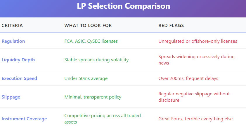 What to check: Ask your broker which LPs they partner with and research the regulations of those firms. Reputable brokers will publicly disclose their liquidity partners.