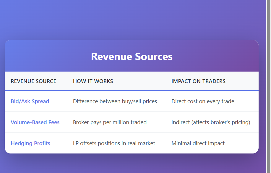 It’s necessary to recognize that liquidity providers aren't running a charity. These are businesses that have to be profitable, and by understanding how LPs make money, you can see how trading costs are structured and why spreads even exist in the first place.