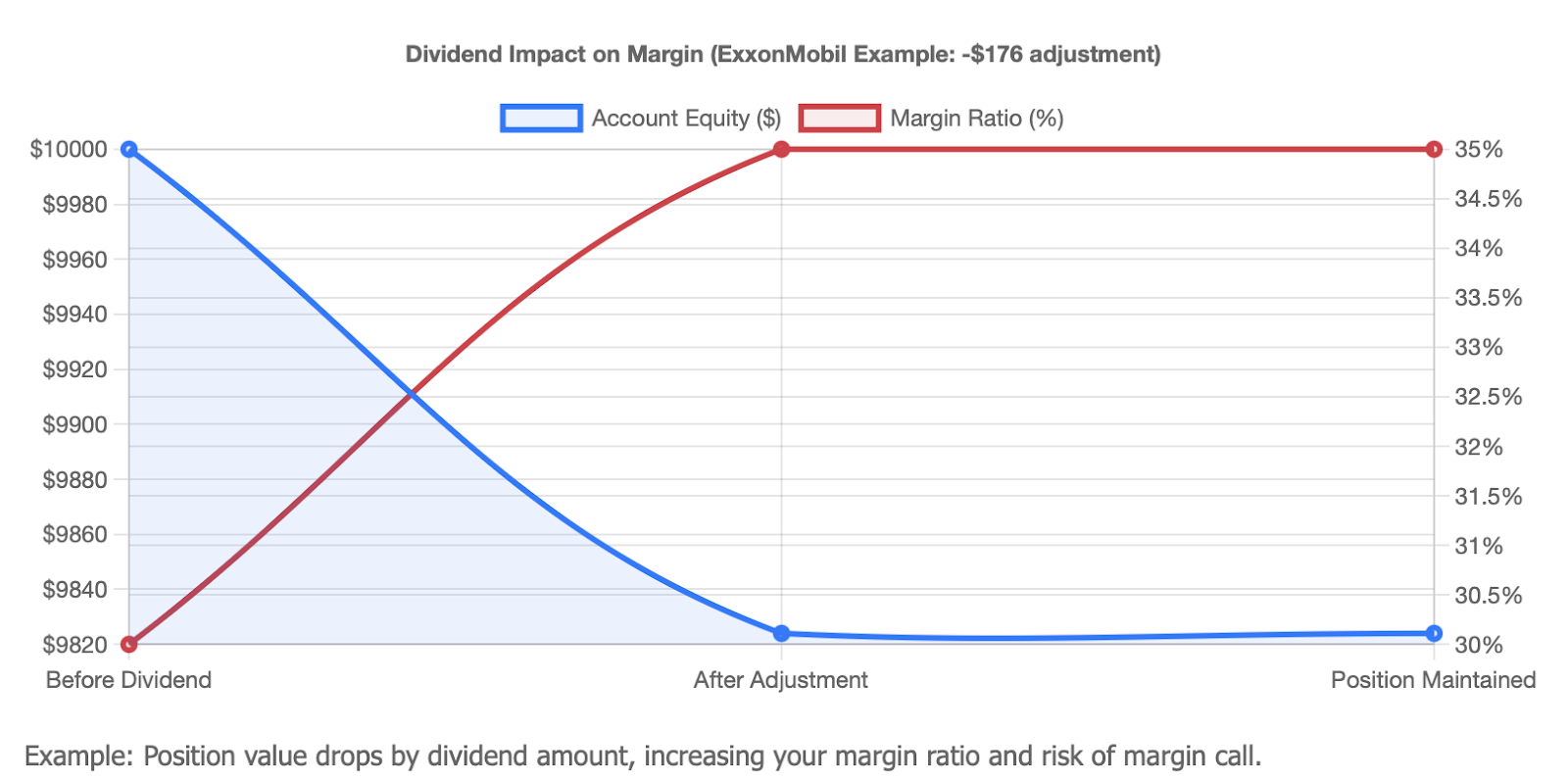Another example is when margin is in place. Dividend adjustments lower your position value. When they happen, they inadvertently lower your overall account equity. If you are trading on margin, this will increase your margin ratio, which may call for a margin call. Has to have sufficient margin cushion built-in. Don't trade is full of limits of leveraging to peak equity.
