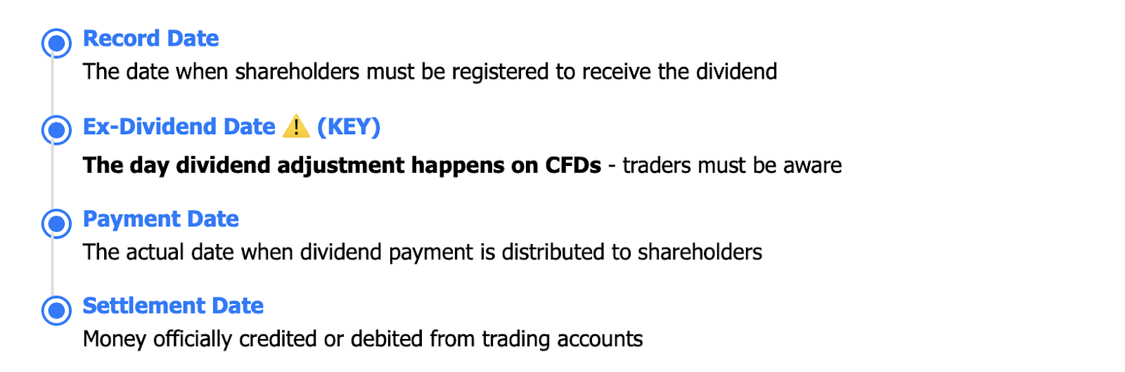 Watch for ex-dividend dates on stock you trade. You can add the ex-dividend to your calendar as a reminder. Also, check your broker's policy on dividend adjustments and how your CFD trading platform determines the adjustment. Being prepared reduces surprises.