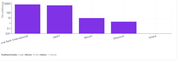 Settlement Speed Settlement refers to the speed at which the transaction is (completed). A traditional transfer of funds from one bank account can take several days to settle (and this is especially true for international transactions). However, transactions that take place on blockchain can settle within a few minutes and often within seconds, depending on the level of network congestion. A Bitcoin transaction, for example, typically settles in about 10 minutes. However, there are newer blockchains (e.g. Solana, which can process thousands of transactions per second).