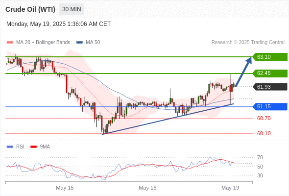 Long positions above 61.15 with targets at 62.45 & 63.10 in extension.