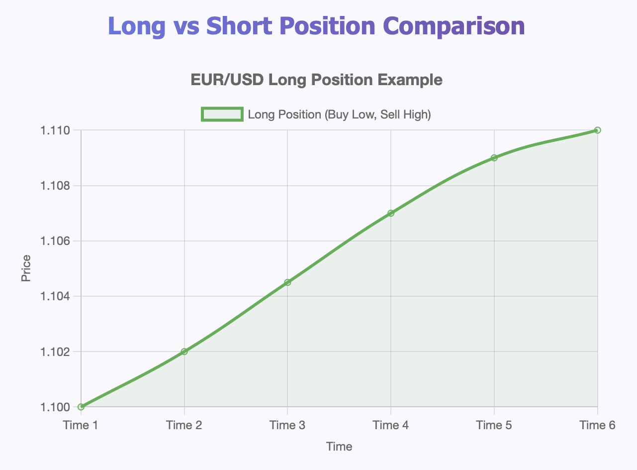 A long position in forex trading is when you buy a currency pair that you believe is going to rise in value so that you can sell it later at a profit. In other words, you are taking a classic "buy low, sell high" approach to currency trading.