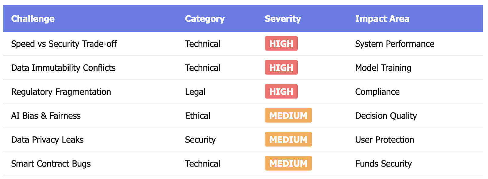 Technical challenges are tangible. Blockchain networks prioritise security and decentralised nature, which can significantly slow down the transactions compared to centralised AI systems. However, at the same time, AI also requires a great deal of computing power to operate at speed. Therefore, these two competing demands are often opposed. You want your AI to think quickly, but you also want some measure of verification from a network of computers, which can be a tall order.