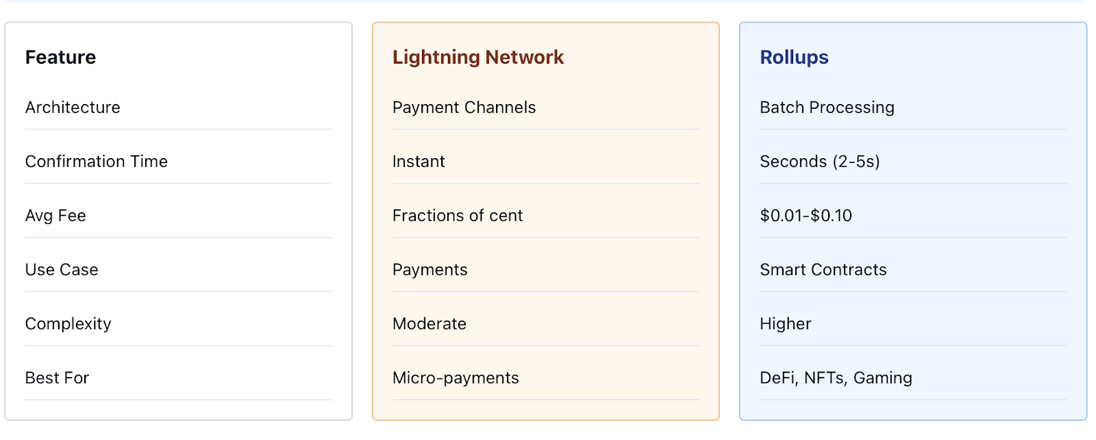 Ethereum took a different approach to scaling. Instead of payment channels like Lightning, it embraced Rollups, a technology that processes transactions off-chain and then submits batched proofs back to the main network.