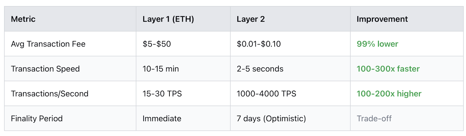 The impact is already clear. Bitcoin's Lightning Network has enabled instant payments and micro-transactions that were impossible before. Ethereum's Rollups have made DeFi, NFTs, and blockchain gaming accessible to regular users, not just wealthy early adopters. Transaction costs have dropped by 90% or more, and throughput has increased dramatically.