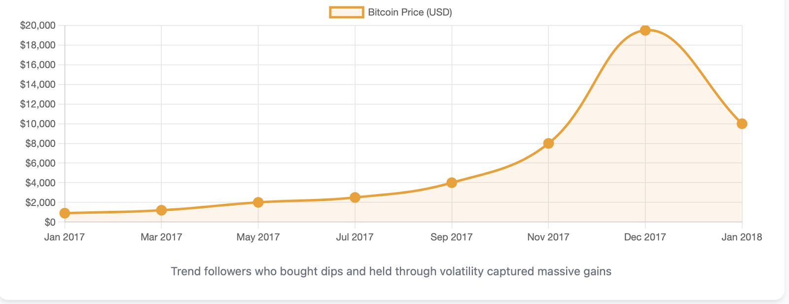 Consider Bitcoin's incredible run from $1,000 to just shy of $20,000 dollars in 2017 - that did not happen by coincidence, it was a steep uptrend largely as a result of institutional adoption, media hype, and FOMO (Fear of missing out). Traders who recognized that opportunity and were able to ride that trend made lots of money. Those who fought the trend? Let's just say they learned some expensive lessons.