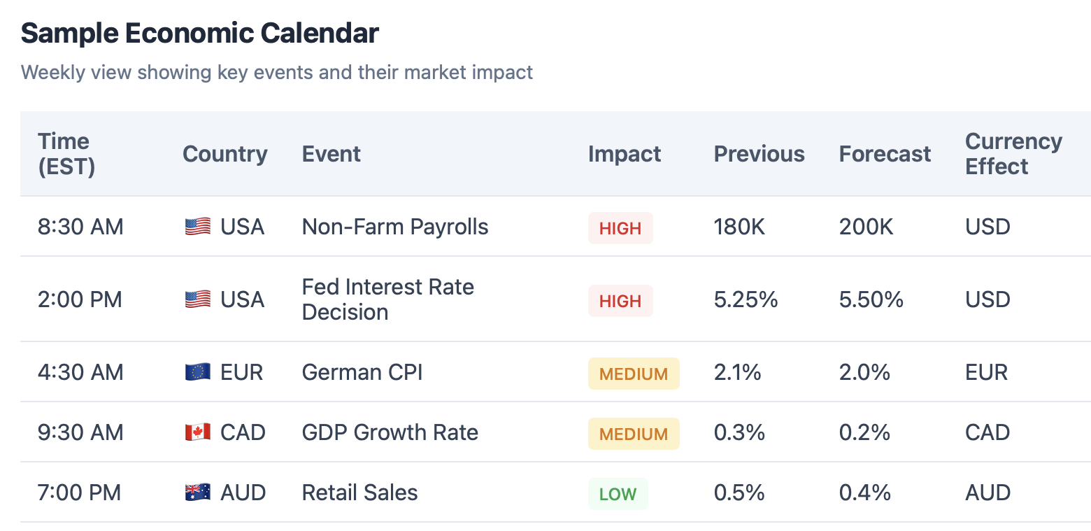 This scenario happens every day on trading floors and home offices around the globe. The economic calendar is your early warning system. It is an exhaustive schedule of every important economic event, data release, or policy announcement that has a chance of reverberating the markets.