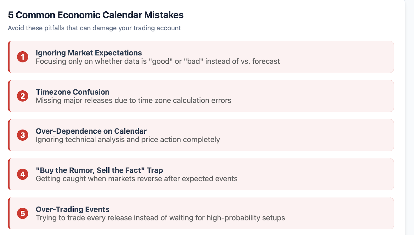Even the most experienced traders can succumb to some of the common traps of economic calendars. Recognizing the mistakes before they happen can save your trading account risks from unnecessary damage.